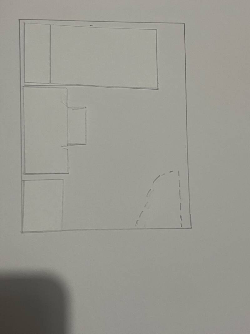 I decided to draw the bed , wardrobe and desk and cut them out then move them a long the same room but an empty version. I did this so that I could visually see what furniture would be suitable in different areas of the room . I started moving the furniture and visualizing what the outcomes could be or how It could affect day to day tasks